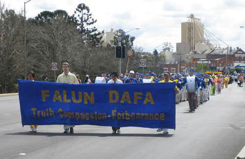 由法轮功学员们组成的悉尼天国乐队,本次专程乘坐巴士赶来参加游行,一路为民众演奏了乐曲“法轮大法好”。乐队的一位负责人袁先生表示:“我们悉尼天国乐队大概有70多人,成立了大约四五个月,经过了几个月的训练,现在可以演奏了。”对于为何特地前来参加游行,袁先生说:“听说这里有一个很大的游行及花展,我们觉的来这里游行能够把法轮大法的美好带到图文巴这个地方来。”
