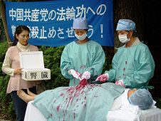 ![]() 高岛平站前,法轮功学员以模拟演示揭露中共活摘器官暴行 |