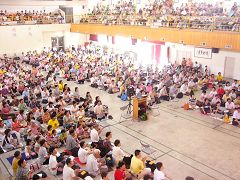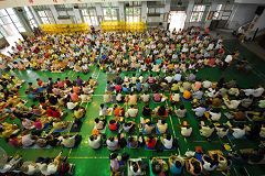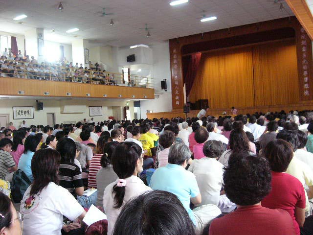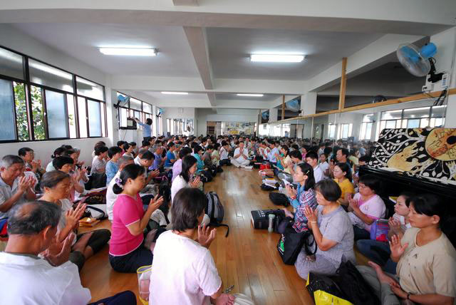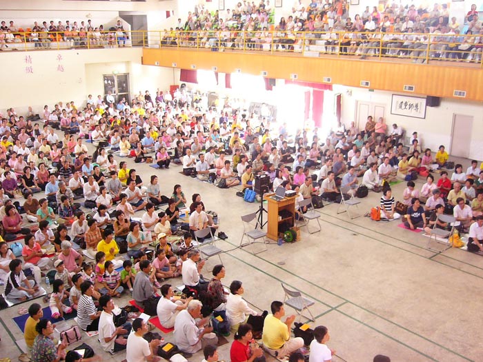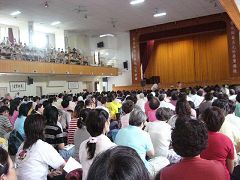 【明慧网二零零六年九月十九日】台湾嘉义地区法轮功学员二零零六年九月十七日在嘉义县朴子市东石高中举办一日学法交流,当天是个天气晴朗的礼拜日,外埠尤其是台湾南部学员也赶来参加,上千名学员们在嘉义县朴子市东石高中的大礼堂席地而坐,集体学法交流,一楼都坐满了,连二楼也座无虚席。一位家住澎湖的学员为了参加学法交流,在前一天就带着折叠式脚踏车搭船来台,辗转来到嘉义市参加交流。