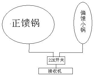 1、不改动现在的“正馈”天线的任何设置,直接增加一个“偏馈”天线收看“新!唐!人:”,安装示意图如下:
