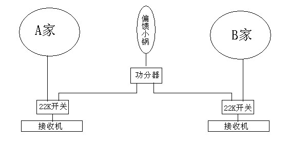 2、如果相邻的两家都已安装“正馈”天线,则可以按如下图示安装: