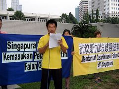 马国学员呼吁新加坡政府公平对待法轮功学员,停止歧视法轮功,同时撤销对学员的不公起诉,并且尊重海外法轮功学员的信仰和行动自由。