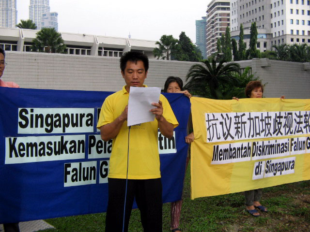 ![]() 马国学员在新加坡驻马最高专员署外呼吁新加坡政府公平对待法轮功 |