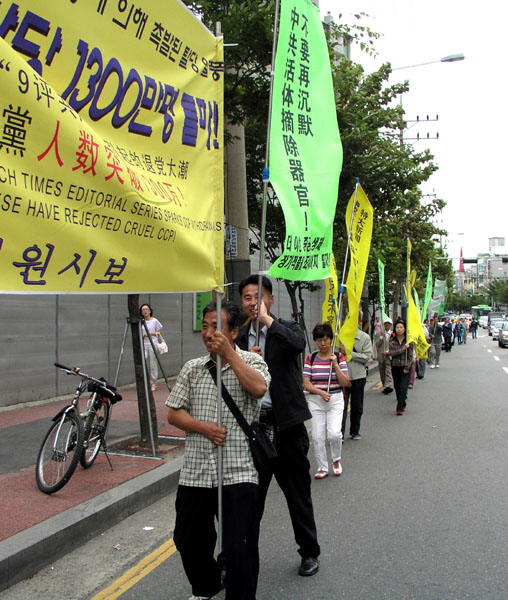 当天游行队伍行进了三个多个小时,看着人们的良知在苏醒,“天国乐团”的队员欣慰的笑了。团长说:“希望每一个听到“天国乐团”演奏的人都能够感受到法轮大法的美好。同时,我们呼吁大家一同制止中共对法轮功学员的迫害。”他并表示:乐团将继续巡回演出讲真相。