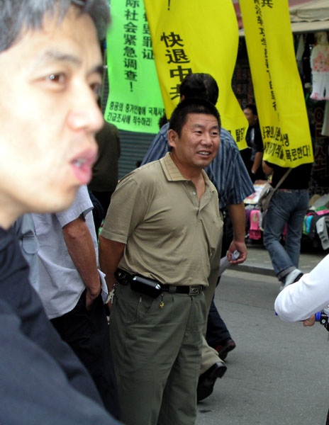 其中还有一个小插曲:有一个醉汉闯到了队伍里,有一名观众上前把他从队伍里揪了出来说:“他们在做好事,你不要捣乱。”