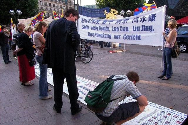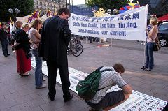 ![]() 法轮功学员在汉堡市政府广场上和平抗议中共迫害 |