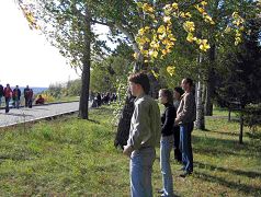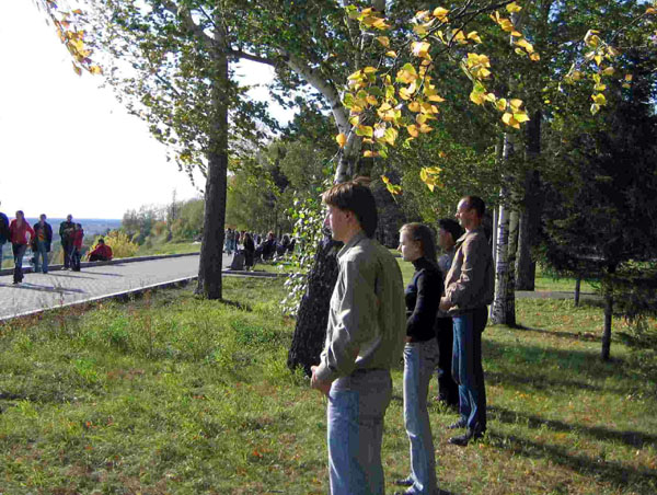 二战纪念园地是市民平日休憩散步之地。有花甲之年的老人看到功法演示,上前打听,询问有关信息,表达向往身心健康的愿望。他们想知道年龄是否是修炼法轮大法的障碍;对炼功时间、地点是否有什么特殊要求;服装是否要特别的等等。学员们都一一耐心作答,告诉他们功法简单易学,没有年龄、时间、地点和服装限制,随时可炼,有事即可去处理事情,是最方便的一个法门。