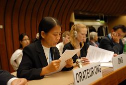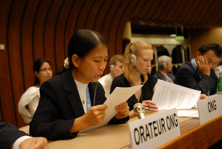 ![]() 黄才华女士在联合国人权理事会人权汇报会上发言, 揭露新加坡当局对法轮功学员的歧视迫害。 |