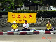 【明慧网二零零六年九月二十三日】二零零六年九月二十二日,泰国政变引起的影响已经渐趋平静,法轮功学员如常来到驻泰中使馆对面静坐,抗议中共对法轮功的残酷