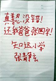 ![]() 张国宇7岁的儿子玄玄亲笔写 |