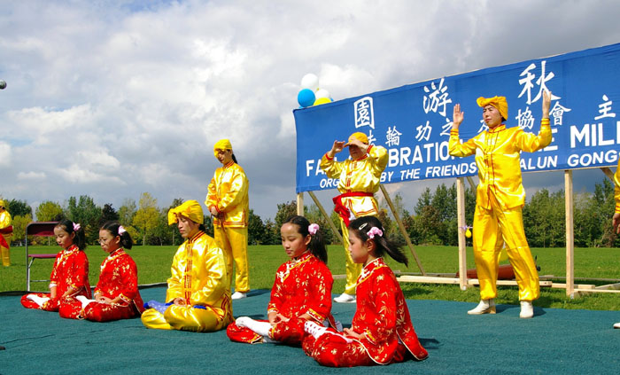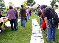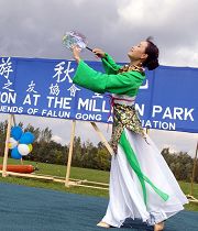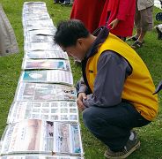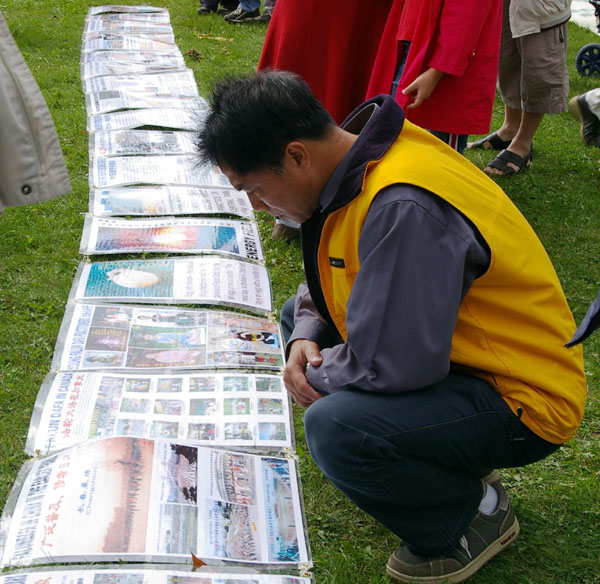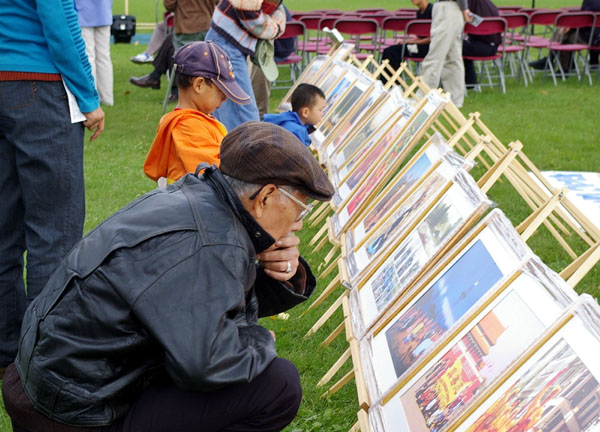 活动场地上设有法轮功真相图片展,介绍法轮功这些年洪传世界的情况,以及法轮功在中国一直被中共迫害的真相。