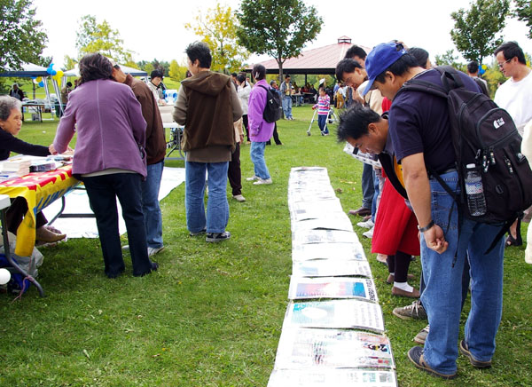 一位来自台湾的老先生了解了什么是法轮功后,当场就问法轮功学员说:“哪有《转法轮》卖,我要读。”