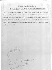 二零零六年八月十五日艺术展法轮大法创始人李洪志先生,自一九九二年以来,无私无倦的将宇宙法理真、善、忍教导给全世界超过一亿的人们。法轮大法使人们通过提高道德水平和炼习五套柔和舒缓的功法而增進身心健康。