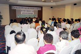 ![]() 二零零六年九月一日在新加坡富丽华酒店公开听证会现场 |