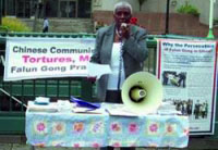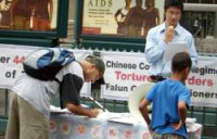 ![]() 来自帕克斯楼珀(Park Slope)的弗兰克•于(Frank Yu)在哥伦比亚公园告诉行人中共对法轮功学员的迫害。 |