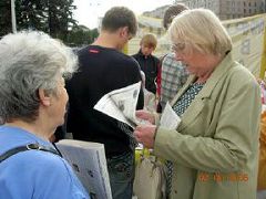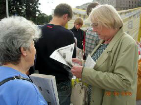一位妇女认真听完学员的介绍后,对学员说:“谢谢你让我知道了这么重要的信息,特别是中国大陆的法轮功学员所遭受的残酷迫害。”她说今天和法轮功的相遇是她的缘份。