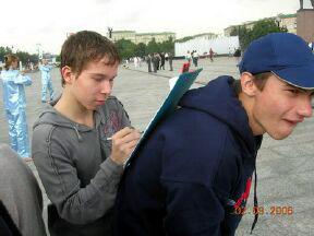 广场上游人非常多,很多人聚集在集会现场,观看真相展板,听学员讲真相。明白了真相的人们对邪恶中共的罪行无不愤慨,纷纷签名声援法轮功的反迫害活动。
