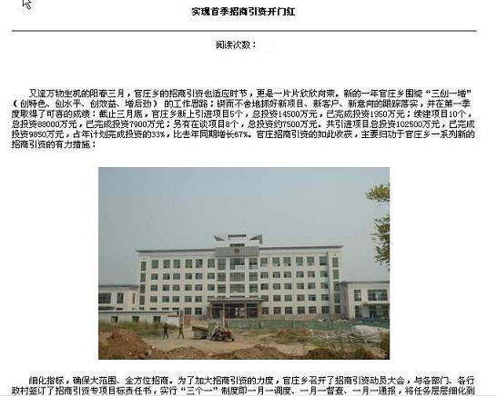 以下两幅图分别来自于官庄乡招商网和实地拍摄的正在建设中的劳教所的照片,请各位读者看看这个山东省八三碳化硅热件厂和山东省第二劳动教养管理所是不是一个地方?