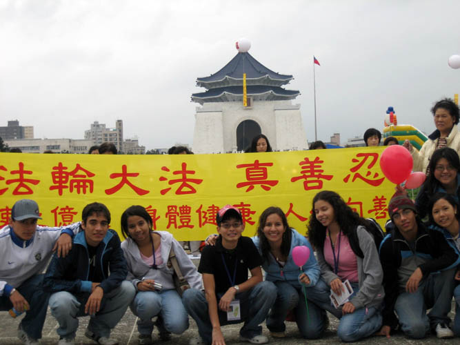 ![]() 一群南美来的学生,看到法轮功非常兴趣,与学员交谈了解真相,最后要求在“法轮大法”横幅前一起拍照留念 |