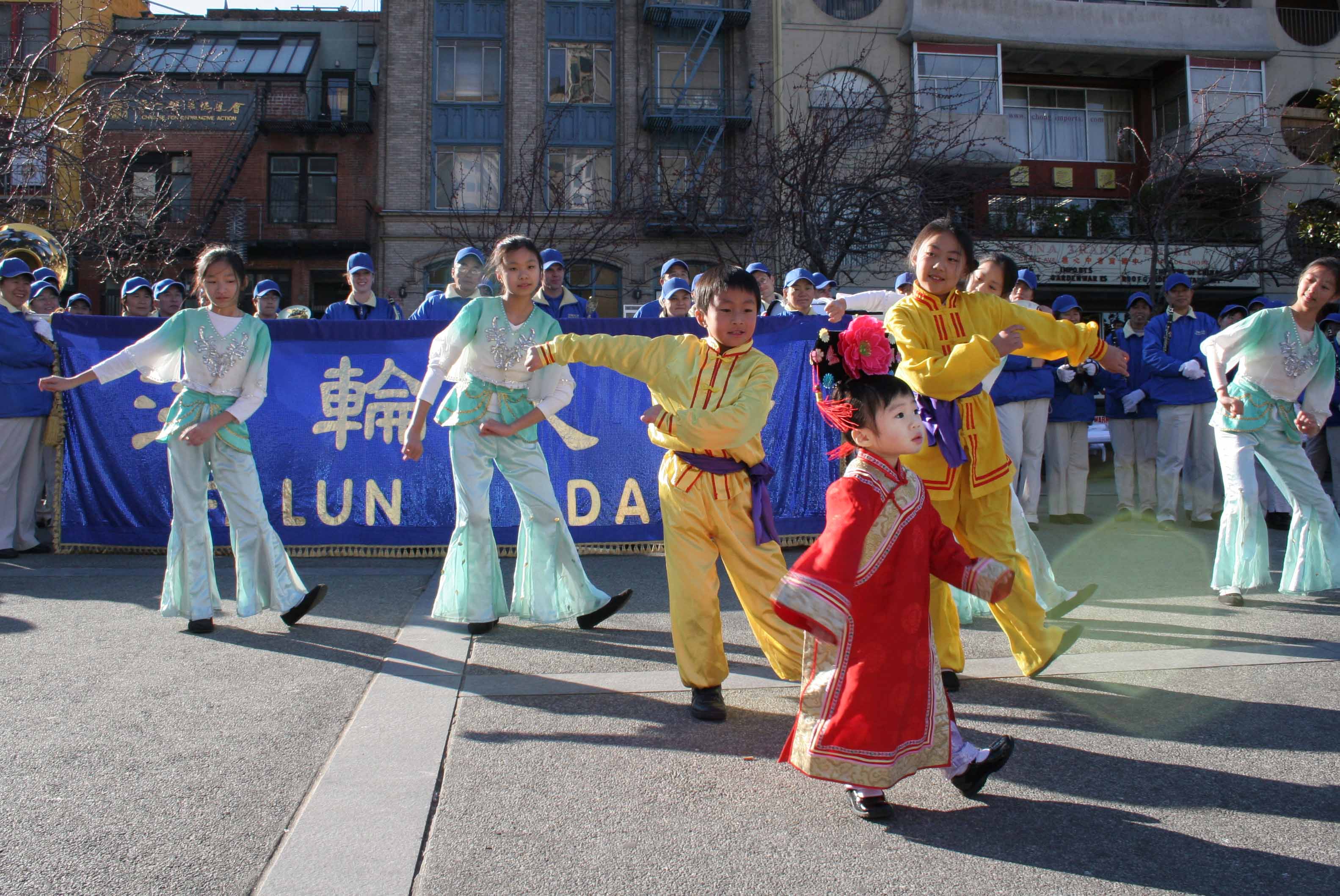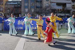 ![]() 明慧学校小弟子参加了庆祝表演 |