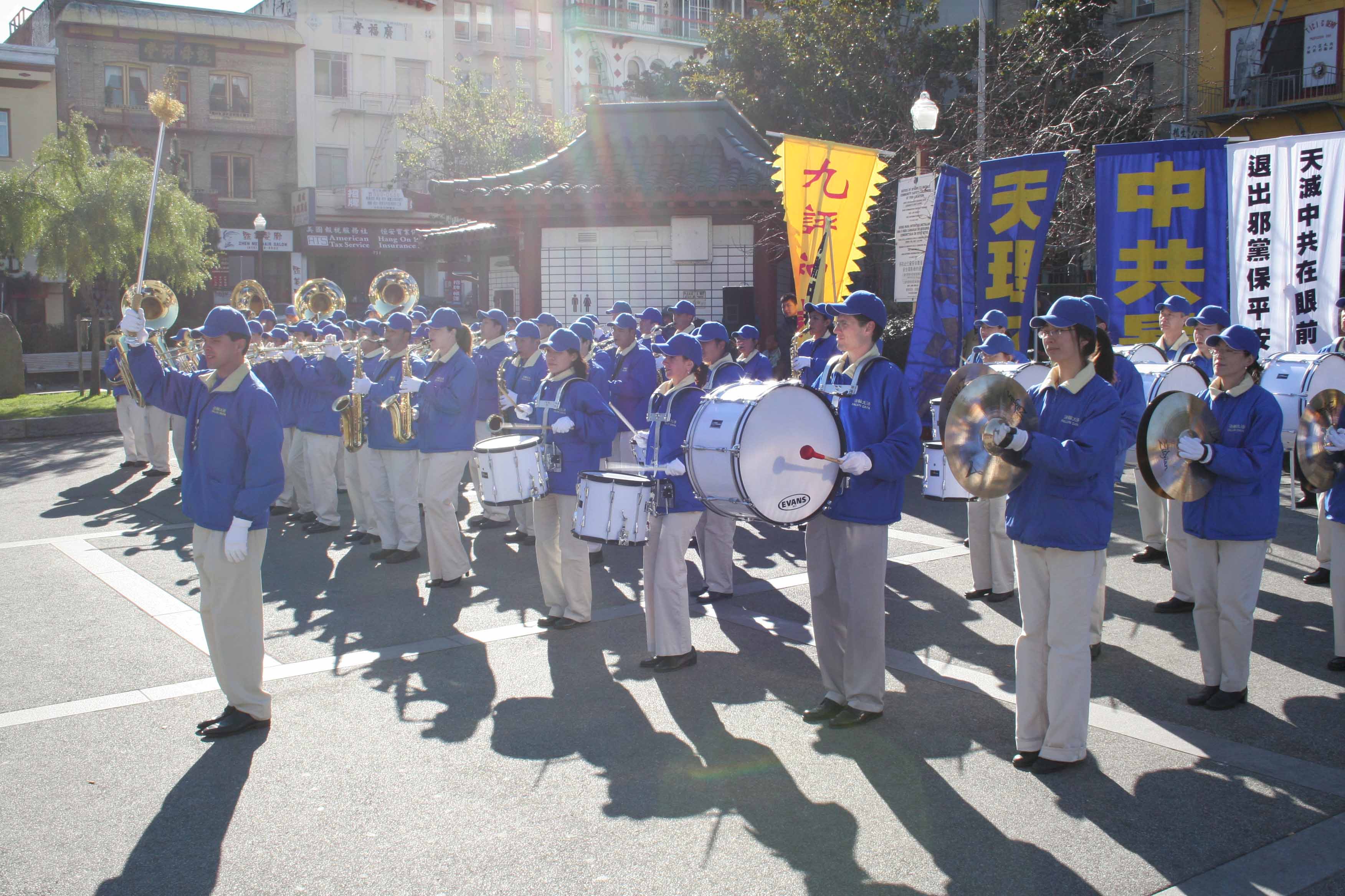 ![]() 天国乐团现身中国城,为退!党!集会助阵。 |