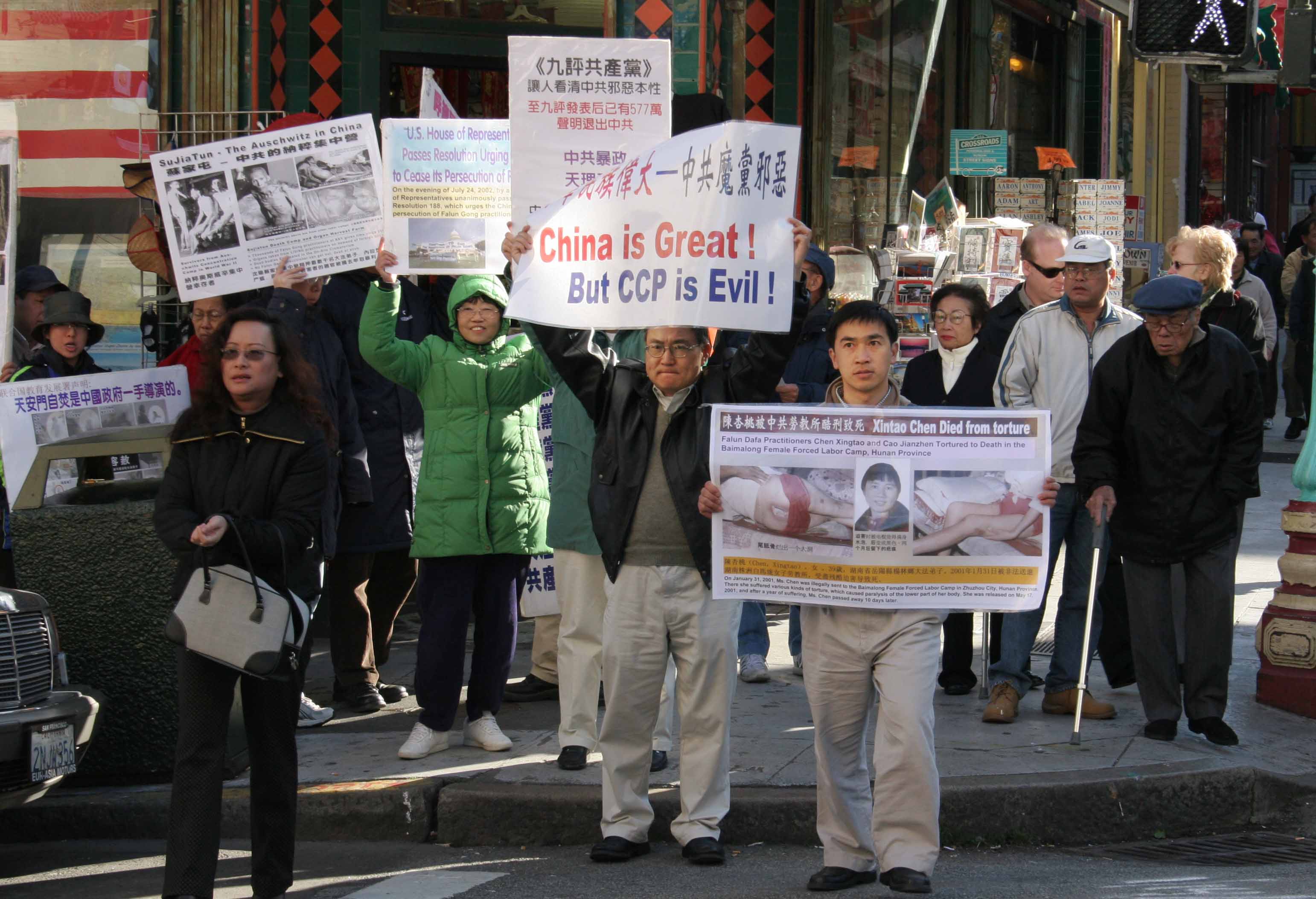 ![]() 集会后沿中国城主要街道举行了游行。 |