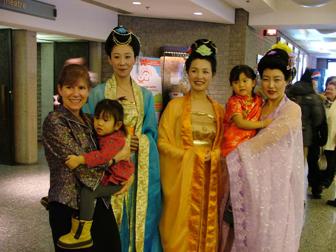 ![]() 居住在蒙特利尔南岸地区的丽丝(Lise)与两个从中国领养的女儿来看演出,入场时与迎宾仙女合影 |