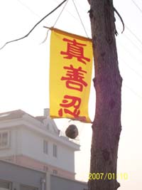 【明慧网二零零七年一月十九日】威海地区最近整体配合发真相、挂条幅震慑邪恶部份图片。
