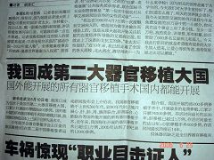 等待换肾的病人住进医院等不了二十多天就可换上,医院欺骗病人说是死刑犯的器官。据医生讲现在肾源紧张,不好找。零六年十二月初,一个移植了肝脏的巴基斯坦人死亡。十二月十七号、十八号做了肾移植、胰移植手术,十二月二十二日晚做了两个肾移植手术。