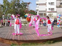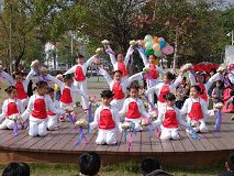 在短短的二十分钟里,随着“法轮大法好”等音乐,小朋友们表演了彩球变化队形、莲花舞、彩带舞等节目。鲜明单纯的色彩,简单整齐的队形变化,显露出小朋友们的纯真和用心,赢得在场观众的赞赏。