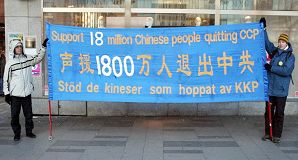 二零零七年一月二十七日,斯德哥尔摩部份法轮功学员和瑞典退!党!服务中心义工在市中心胜利广场再度曝光中共活摘法轮功学员器官的暴行,呼吁民众共同制止正在中国发生的群体灭绝。集会上宣读了加拿大律师大卫•麦塔斯(David Matas)和前议员大卫•乔高(David Kilgour)关于中共盗器官的调查报告的部份内容,宣读了欧议会副主席爱德华•麦克米兰-史考特(Mr. Edward McMillan-Scott)致法轮功受迫害真相联合调查团(CIPFG)的支持信。