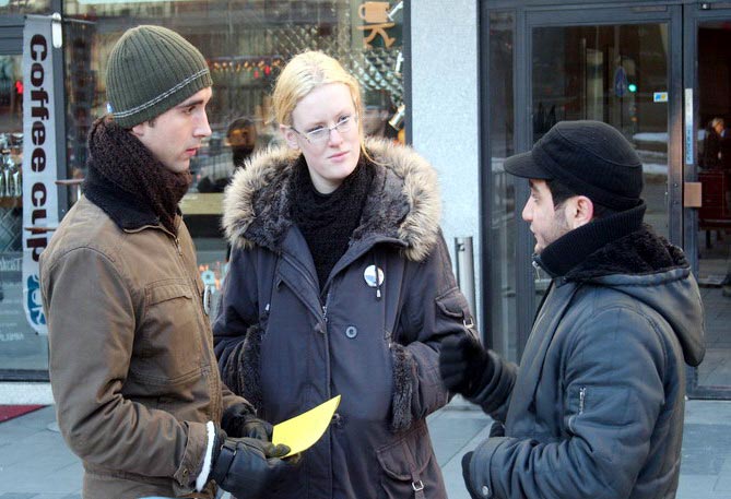 一位带着两个孩子的父亲听完学员讲解后索要中文资料,要寄给他的中国朋友。他得到了一份中文的《·九·评*共产党》,又要了一份瑞典语《·九·评*》留给自己看。后来他又带着孩子回来两次,拍照和询问以后他如何可以联系上退!党!服务中心,并提供帮助。