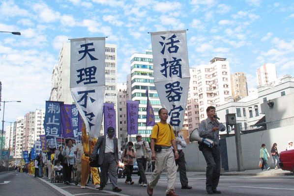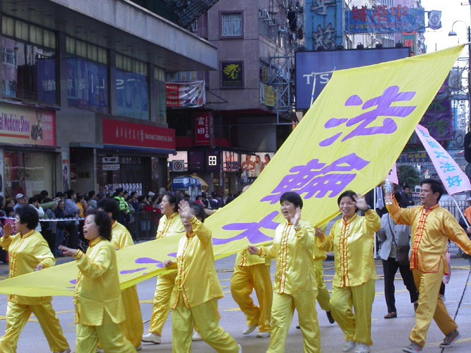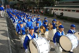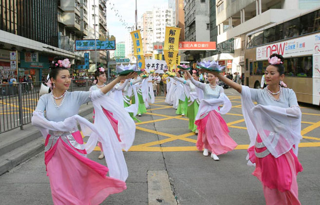 ![]() 台湾天国乐团走过香港九龙区的繁华闹市 |