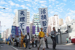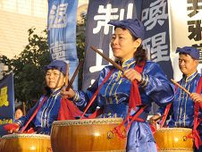 ![]() 义工一路呼喊口号,揭露中共迫害 |