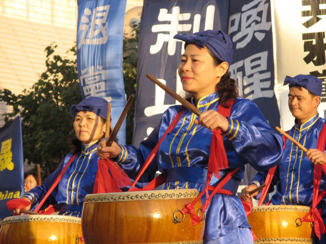 参与游行的法轮功学员与各界民众手持各种横幅、幡旗与标语,有洪传法轮大法的美好,有揭露中共的邪恶本质及其对法轮功的残酷迫害,也有声援三:退.解体中共,迎接没有共产党的中华新纪元。此外,游行人士还声援因仗义呼吁制止迫害法轮功而横遭中共迫害的高智晟律师。游行队伍中穿插着阵容整齐、乐声宏亮的天威唐鼓队、乾坤鼓队以及仙女表演,更显气势非凡。