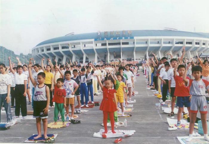 历史照片:九九年七二零前深圳法轮功学员集体炼功