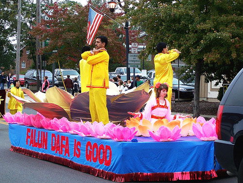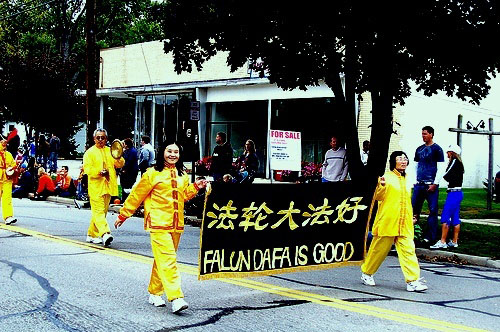 法轮功学员参加美国俄亥俄州萨尔伐尼亚市金秋节游行