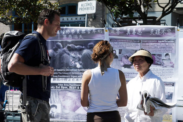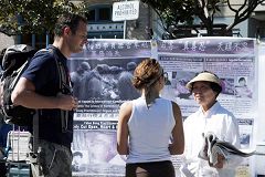原中国大学教授、旧金山居民余先生表示,中国人不要再受骗,在华人社区里还有一些人在中共问题上没有看清楚,他希望爱中国的人,爱中国人民和中国的河山,而不是爱杀人的中共。他说,法轮功在让中国人醒悟。有良知、有良心的中国人,要快找真相。