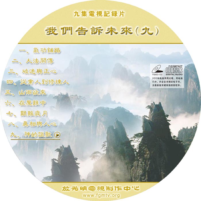 不干胶:《·九·评*》光盘附言、真相书签光盘封面:《我们告诉未来》第九集