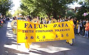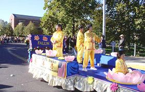 法轮功学员的游行队伍展示着“法轮大法”横幅,“真、善、忍”牌匾,花车和功法演示。独特的东方文化特色使其在一百多个游行团体中独树一帜。路旁上万的观众们不时对法轮功学员的队伍报以喝彩和掌声。观众中也可见到不少华人面孔,他们大多对法轮功学员招手,鼓掌,微笑或拿起相机抓拍镜头。有的华人还与忙碌着发放真相传单的法轮功学员短暂交谈,表示有兴趣進一步了解和学炼法轮功。