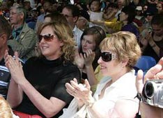 游行结束后,一位西人主动与腰鼓队的彭、刘女士交谈,她说:“法轮功游行队伍灿烂的笑容,让我情不自禁也从头笑到尾,太谢谢你们了。”