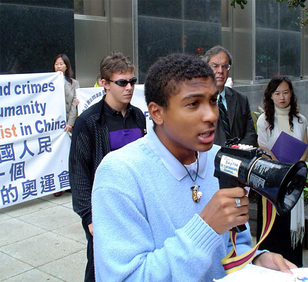 参加集会的马修和他的几位同学在接受采访时说,“全世界的人,无论生活在哪里,都理应享有最基本的人权和自由,可是中国人的人权却被剥夺了。虽然今天这种情况发生在中国,距离我们很遥远,可是如果我们不站出来制止,将来可能会发生在我们家门前,所以这种事情一发生,我们就要全力制止。”