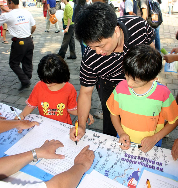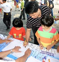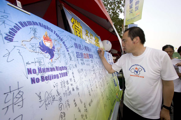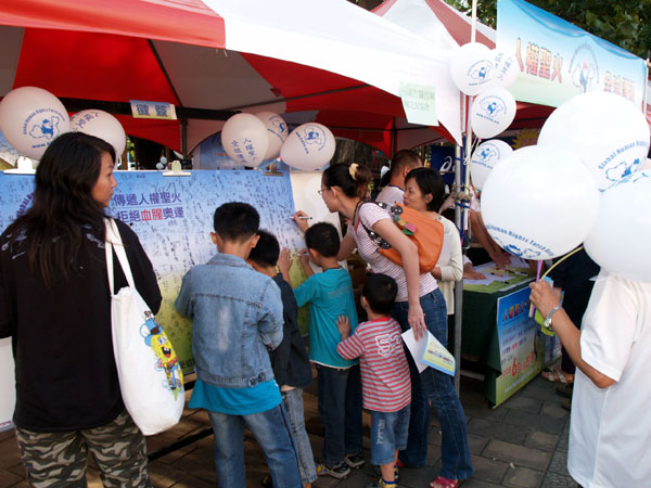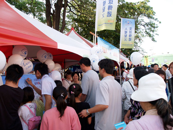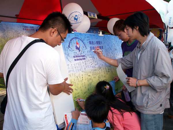 ![]() 络绎不绝的民众支持签名「人权圣火全球传递」活动 |