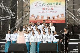 ![]() 天音合唱团演唱人权圣火主题歌,感动全运会观众 |