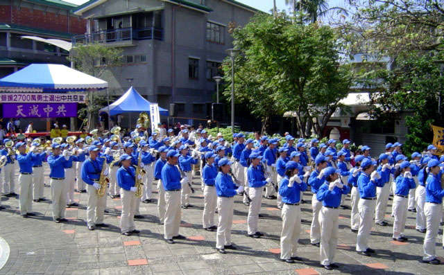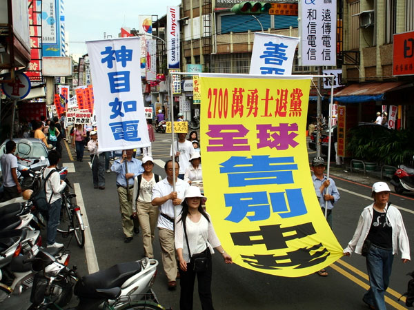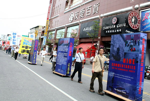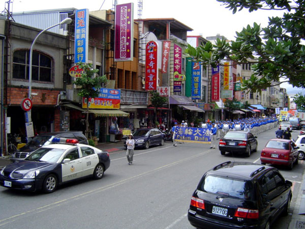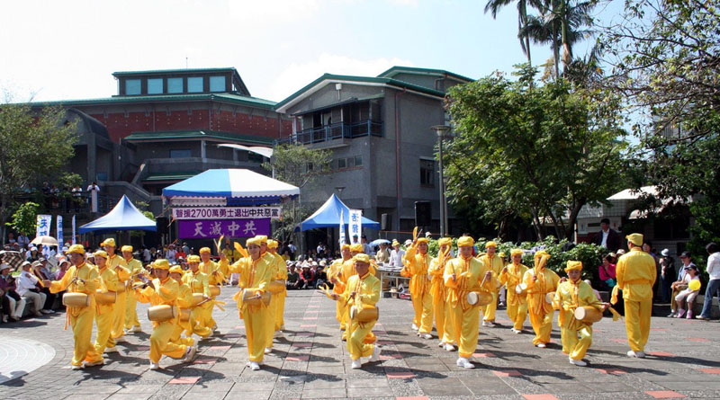 这是台湾东部首次的声援退!党!大游行,引起当地民众极大的关注,长长的千人队伍行进在繁荣的宜兰市区,阵容整齐的天国乐团、威风凛凛的旗鼓队与腰鼓队、柔美的仙女队、法轮功学员演示功法等等,传达中华正统神传文化的纯正、美好。述说真相的横幅、看板,揭露了中共迫害人权的实况,尤其是「活摘器官」的暴行,震惊了当地纯朴善良的民众。