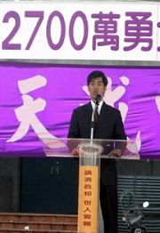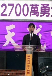 记者会主持人、宜兰县慧灯中学校长洪腾祥表示:中共建政以来残暴屠杀了八千多万中国人、镇压法轮功、活摘法轮功学员器官贩卖,并以近千枚飞弹瞄准台湾,中共如此残酷的对待自己的同胞,如今有二千七百万中国人觉醒并退!党!,这是一个和平解体中共的契机,所以台湾同胞应该声援他们。中共活摘法轮功学员器官贩卖的暴行,令爱好和平的台湾民众感到惊讶和愤怒。
