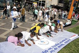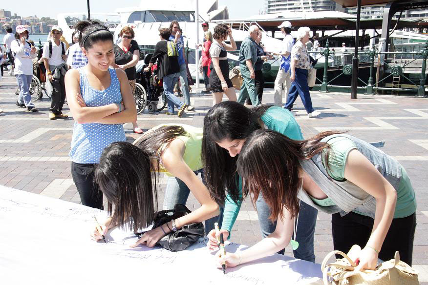 ![]() 悉尼民众纷纷签名支持人权圣火和抗议中共迫害人权 |