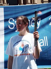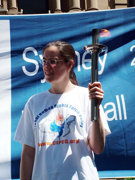 ![]() 澳洲参议员凯丽•纳塔(Kerry Nettle)在接过火炬 |