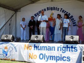 维乌里副市长多米尼克表示,澳洲土著人传统上也是用火把的方式来传递讯息,他表示:今天我们在这里不是为了反对奥运,是为了支持人权。他说:“我们认为人权第一,运动第二。我们都是运动的爱好者,但是我们把人权看得更重要,目地就是为了改善中国的人权。愿手中的自由之火让人民获得自由。”