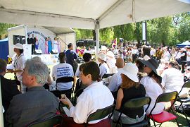 ![]() 第一舰队公园里,人们观看“人权圣火”集会 |